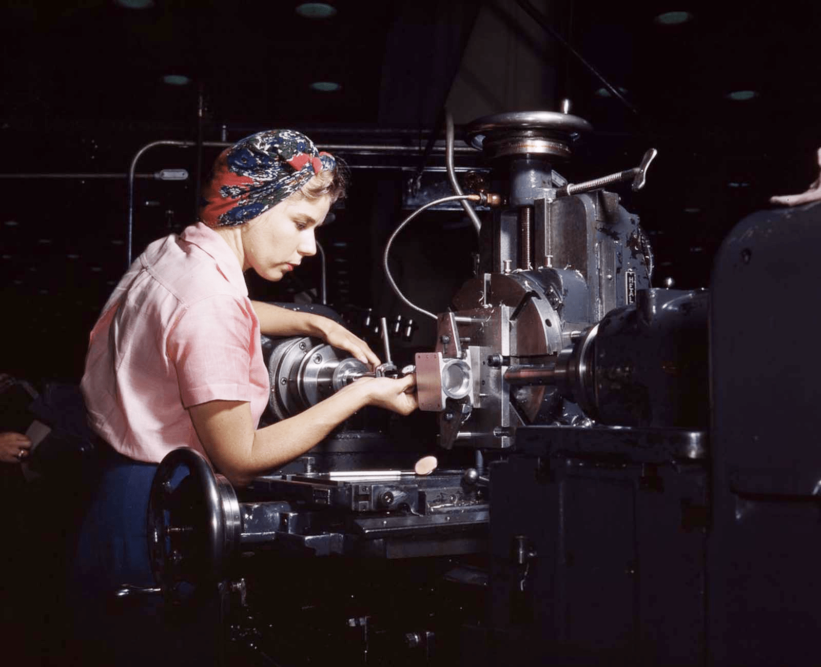 Suddenly faced with the tremendous challenges of World War II, the US had no choice but to retool the manufacturing sector of the economy to build the needed materials of war. One major obstacle: many of the men working in the factories either enlisted themselves or were drafted into the war. The only solution was to seek out nontraditional workers to fill those roles.